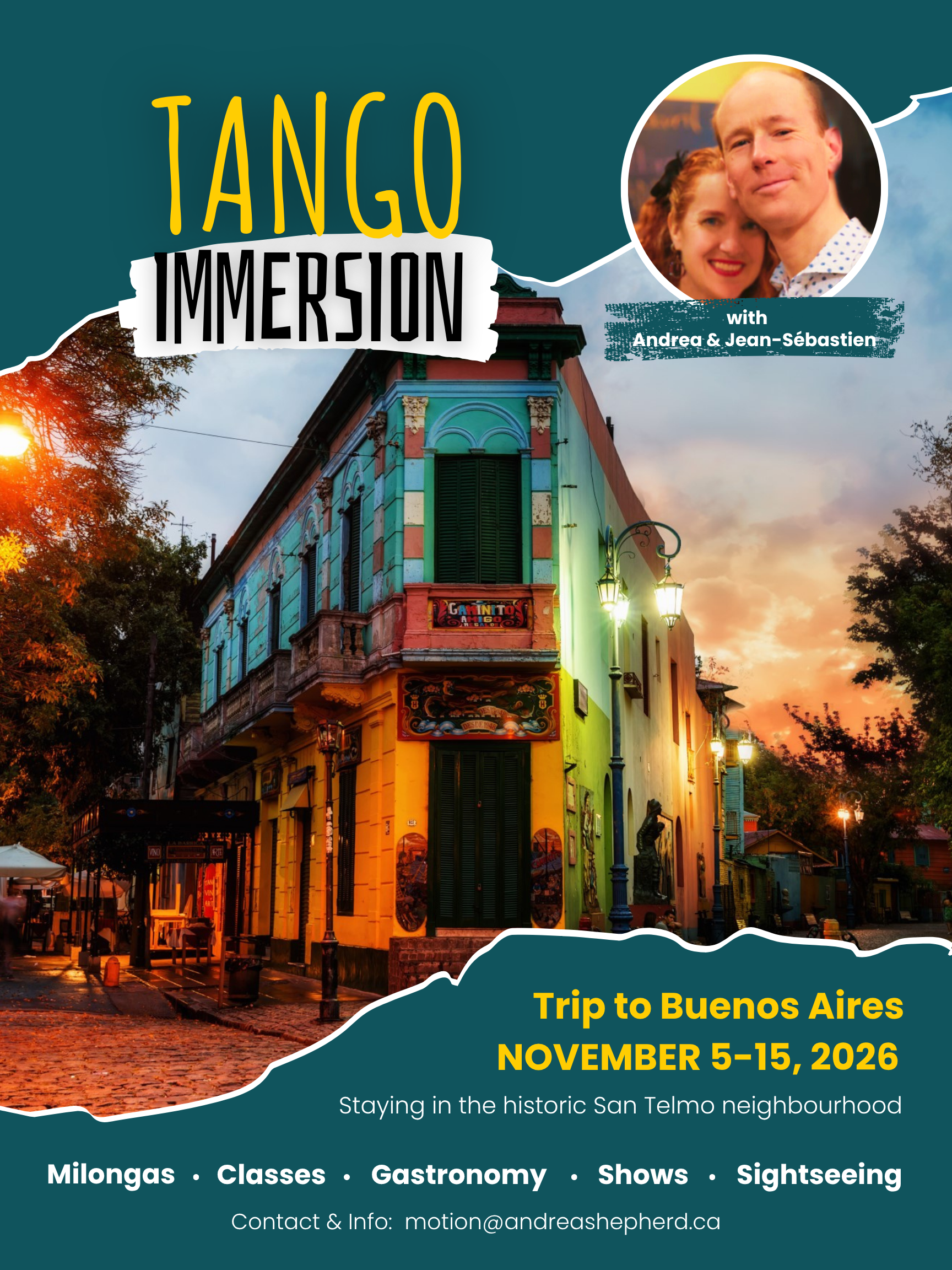 Spend 10 days with Andrea and Jean-Sébastien, longtime tango colleagues and friends, delving into Argentine culture, food, and, of course, dance. You’ll be staying at La Mariposita, the lovely boutique hotel in the historic San Telmo neighbourhood, run by amazing tango dancer and teacher Carolina Bonaventura.